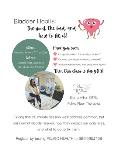 Registration: Pre-registration required; to register text “PELVIC HEALTH” to Sierra at 989.996.1468