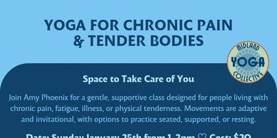 This class is designed for people living with chronic pain, fatigue, illness, or physical