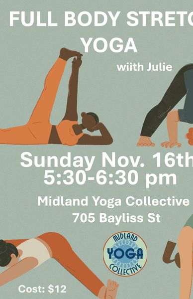 We'll begin with a grounding and intention-setting meditation and a guided self-Reiki session to help you connect with your inner energy. We emphasize listening to your body, using props generously for comfort and release, and connecting with your body and breath.