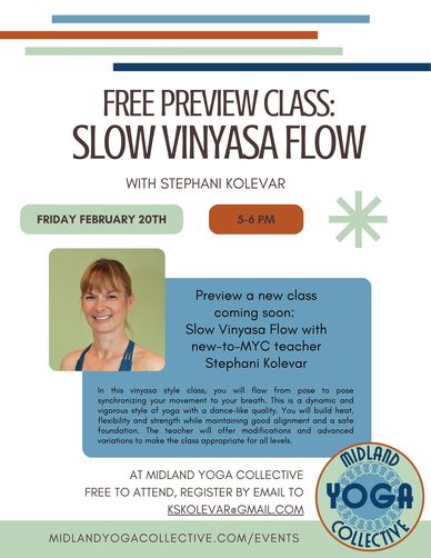 Preview the potential new MYC teacher Stephani Kolevar's upcoming class offering, Slow Vinyasa Flow, for free!